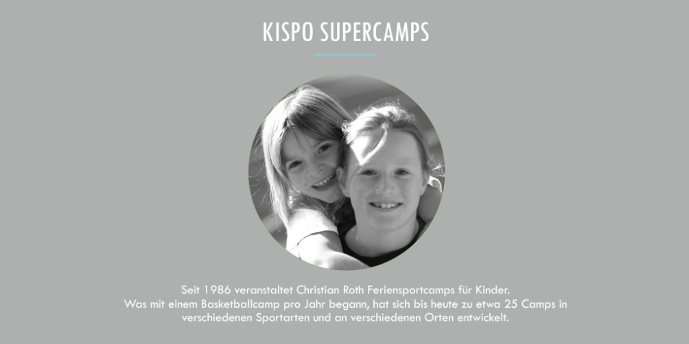 Alle Details zum Angebot des Projekts Kispo Supercamps finden Sie auf einer eigenen Internetseite. Auf www.kispo.de gewinnen Sie einen schönen Einblick in unsere Arbeit, wenn Sie sich durch verschiedene Camps klicken. Natürlich kann man sich auch direkt online anmelden.